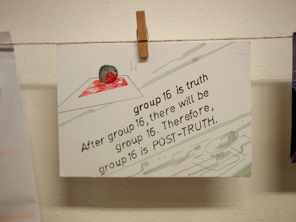 The brief was based upon shortlisted words for The Oxford Dictionaries Word of the Year and Post Truth did in fact win Word of the Year 2016.