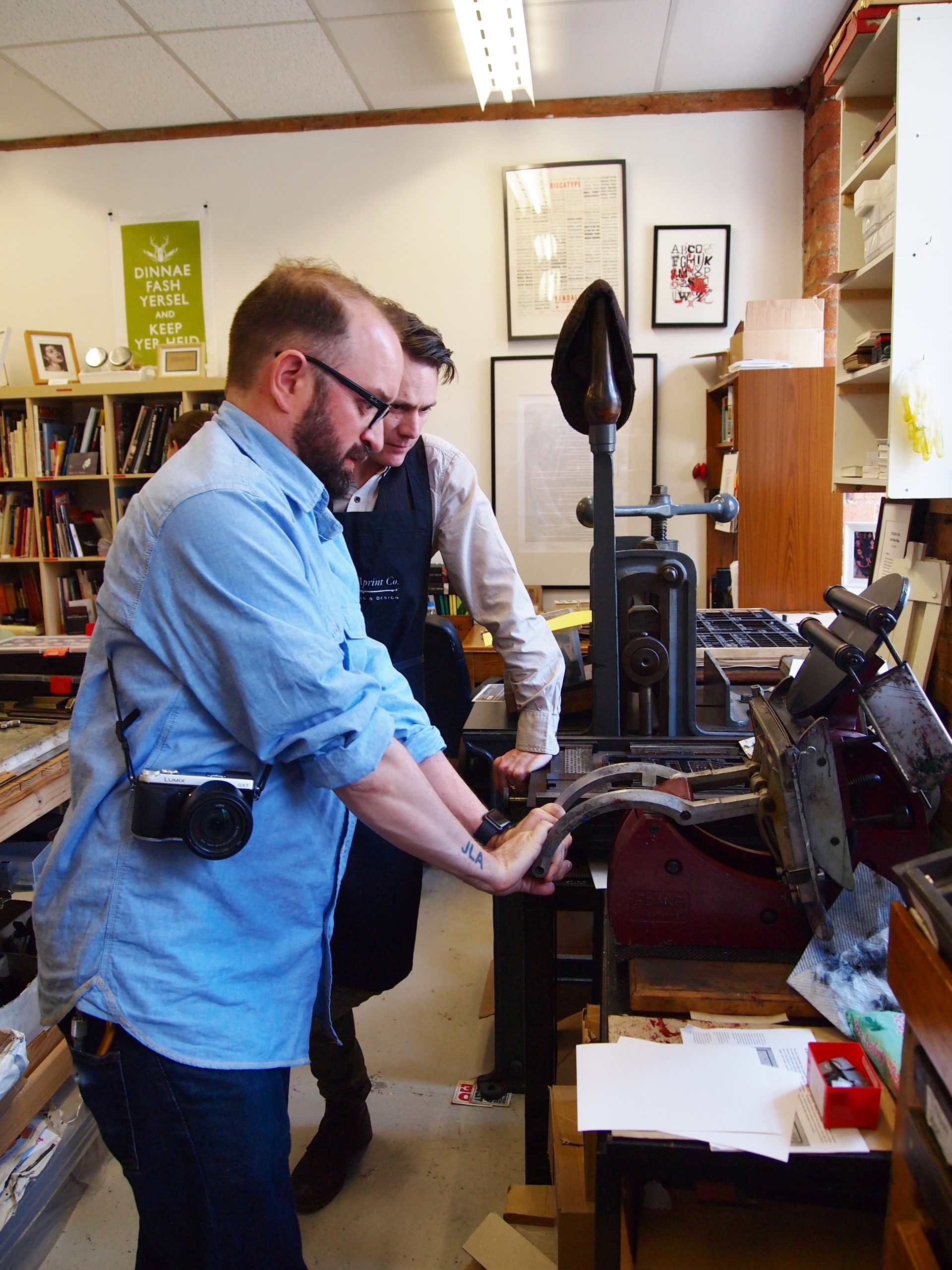Due to a series of fortunate events, the guys from Bullet Creative found themselves on the doorstep of Banks Mill last month, looking for a letterpress studio. Bullet were scouting out the impressive Silk Mill out for an upcoming event when, by chance, they came across The Smallprint Company.